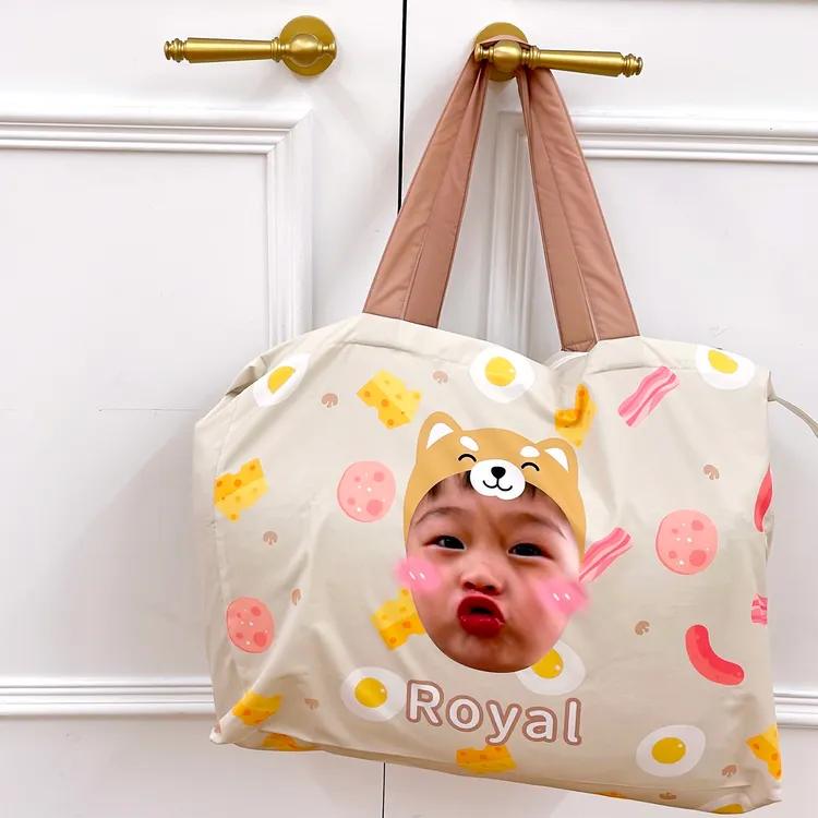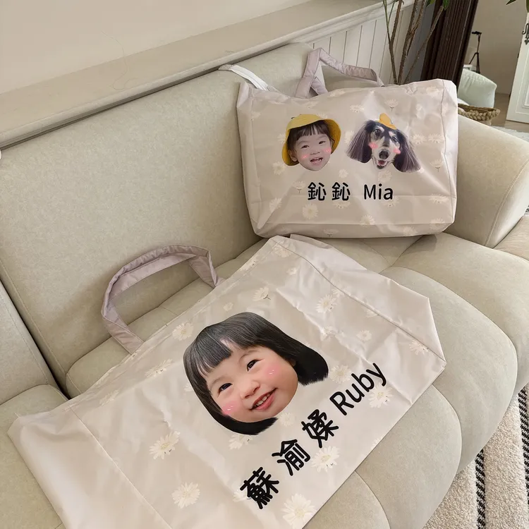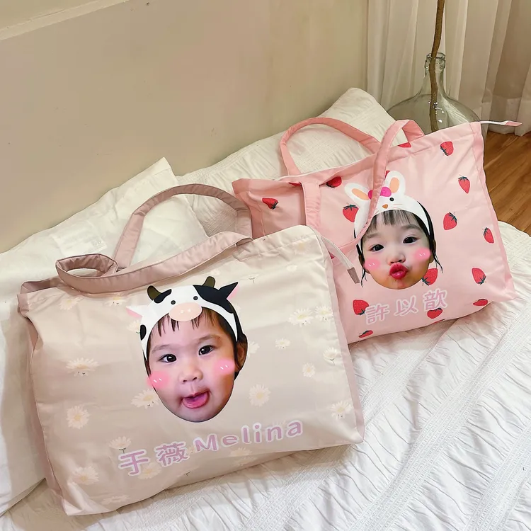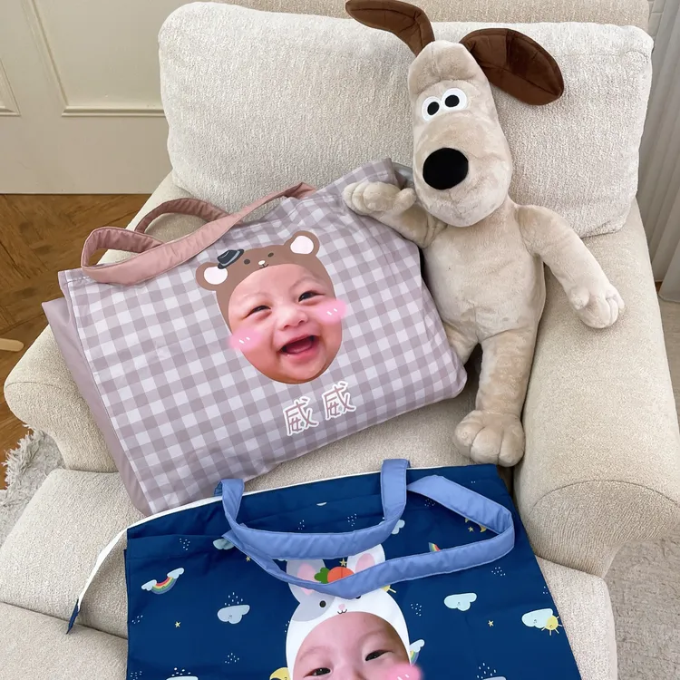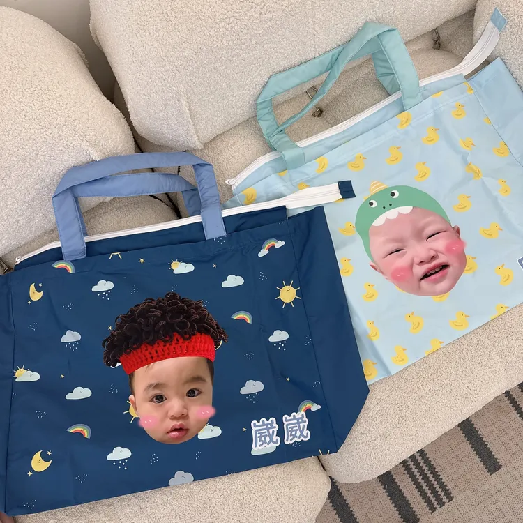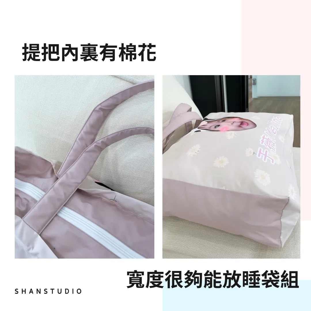 下單後加賴提供照片,須加字務必記得提供點擊看影片介紹開學幼稚園必備的收納睡袋 防潑水布特殊超輕巧布料,帆布款厚實兩側還有大口袋印上寶寶大頭超好認‼️ 媽咪也可以當外出旅遊的旅行袋 1.選擇頭飾(可不選) 2.選擇底色(提把可自選或闆娘配相似色)3.需加字可下單訂單留言備註下單後加官方賴傳照片確認是否能製作