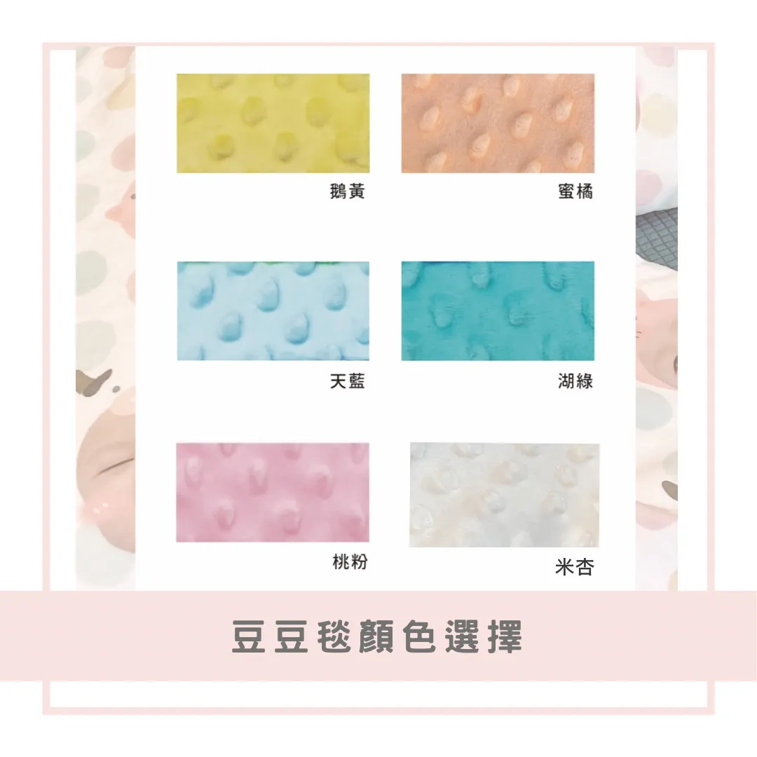 豆豆顏色選擇:鵝黃💛/蜜橘🧡/天藍💙/湖綠💚/桃粉💗/米杏 寶寶界的紅毯✨必備安撫豆豆毯 顆粒感可以刺激寶貝觸覺發展 外出旅遊或車用可選擇小,家用睡覺可選擇大款 ⚠️豆豆毯為薄款,厚款請考慮法蘭絨毛毯唷!