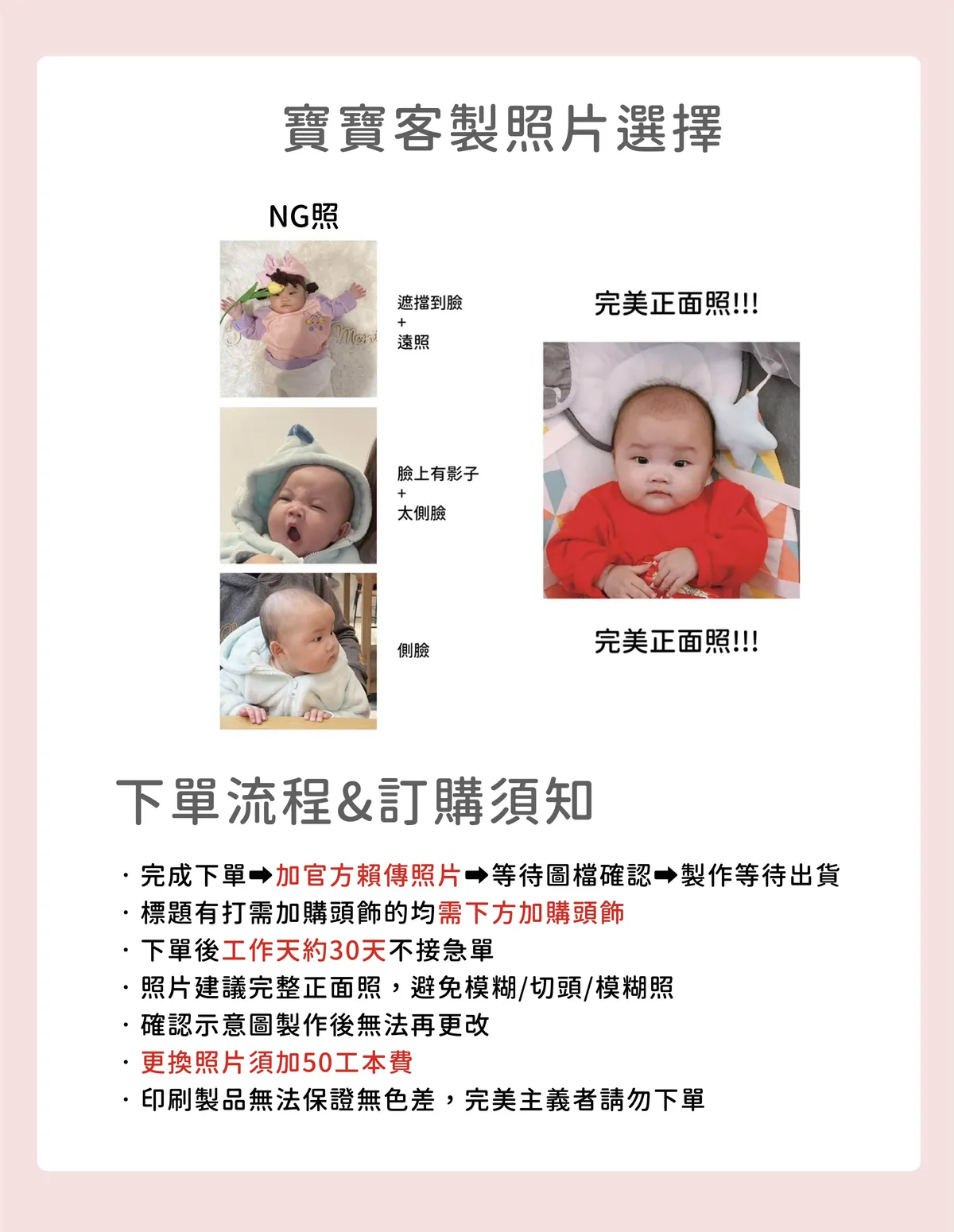 • 訂購流程:完成下單>加LINE傳照片>確認圖檔>等待出貨