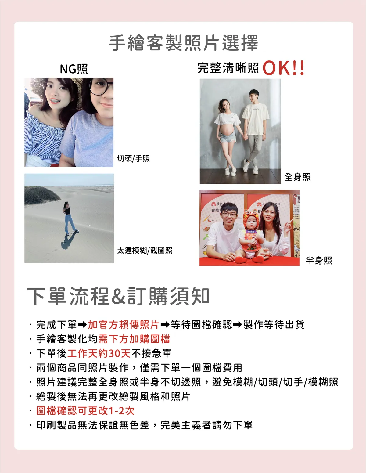 • 訂購流程:完成下單>加LINE傳照片>確認圖檔>等待出貨